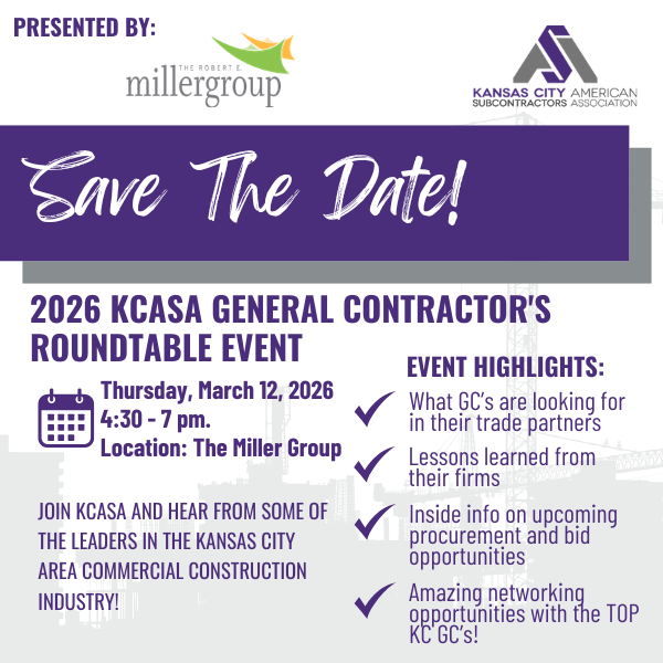 Thank you for submitting your nominations for the KCASA 2026 Industry Awards. This is your opportunity to help KCASA highlight General Contractors, Superintendents, Project Managers, Subcontractors, and Suppliers in the KC Metro who have demonstrated professionalism and excellence in their field. Nominations will be counted, and when we have determined the Top 10 finalists for each category, you will have a chance to vote for the Top 3 finalists. Nominations close Jan 16, 2026, at 5 pm. Final voting ends Jan 28, 2026.